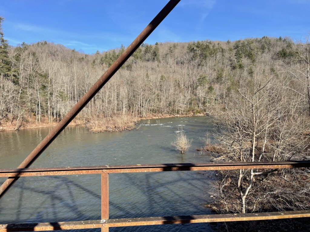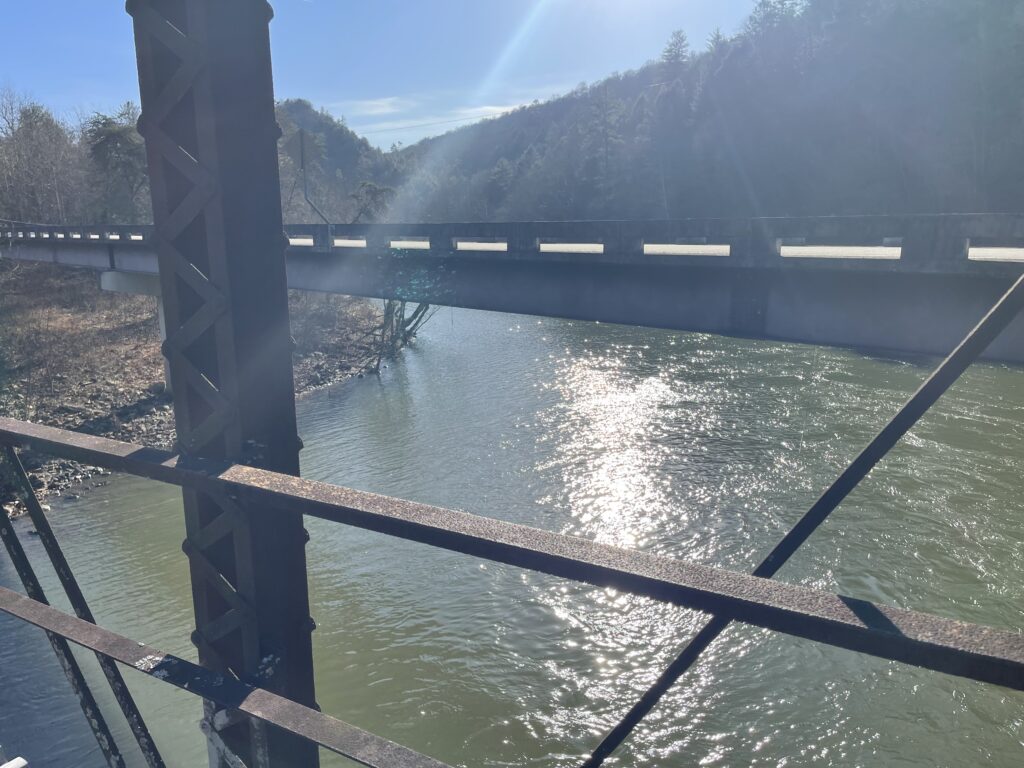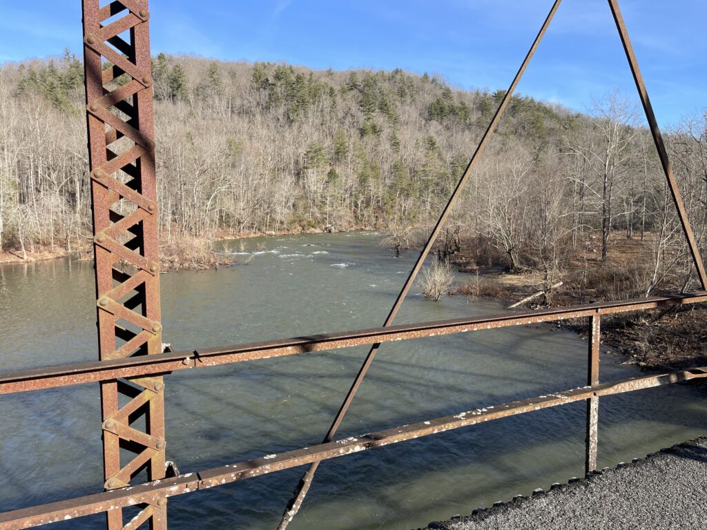 The bridge is immediately visible from the parking lot - in fact, you can park under it.